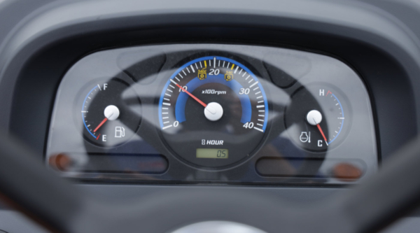 - Illuminated Dashboard: The illuminated dashboard ensures great visibility while working in bright daylight or at night. The operator can check important instrumentation at a glance with an easy-to-see tachometer, hour meter, fuel temperature gauge and battery charge lamp.