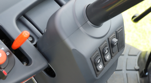 - External 3-Point Control Lever: The rear external 3-point control lever allows you to easily raise and lower the lift arms when attaching implements.